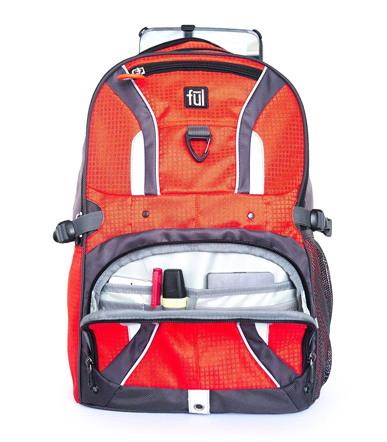 Be seen with this sleek style reflective backpack, featuring durable construction with lots of pockets and compartments to keep you organized. The FUL Momentor Backpack boasts dual storage compartments, an internal organizer, and handy, electronic friendly elements so you can enjoy your digital life while on the go. Today the FUL brand ambassadors include the world class American pro skateboarder, Torey Pudwill. 2011 T-Puds was crowned Transworld Street Skater of the Year. More recently, Torey gained notoriety after skating with the Grammy winning rapper Lil Wayne. Torey continues to be one of the very best pro skateboarders performing at the highest level. And just like T-Puds, with the FUL Momentor backpack, you can be seen carrying all your electronic gear, essential for on the go meetings, university and sporting activities.
