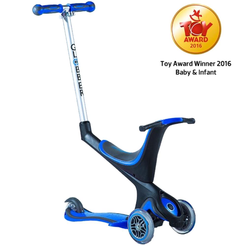 The award winning Globber 5-in-1 mutlipurpose scooter changes into 5 positions creating 3 main functions including push-a-long for parents, a balance trike and a 3 wheeled scooter.
